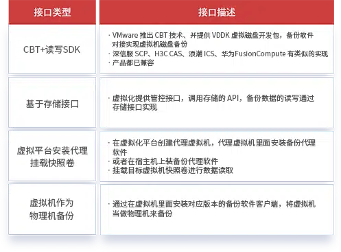 提供包括 XBSA、EOBS、EPFS 多种开放式应用对接接口,兼容多种操作系统、数据库、虚拟化平台及云计算环境,实现非侵入式数据备份。